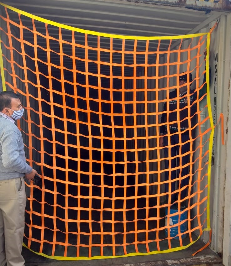 A cargo net is a type of net. It is usually square or rectangle, but sometimes round, made of thick rope, with cinch ropes extending from the corners, and in some designs, the edges. It is named for its use in transferring cargo to and from ships.